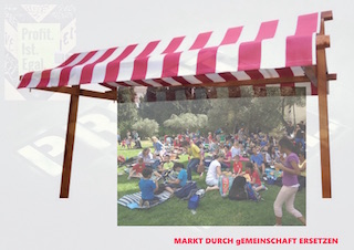 Was ist ein Wert? Zum Beispiel ein Berg voller Kleider. Dinge im Überfluss in einer Wirtschaftsordnung, die im Prinzip nach Mangel verlangt. Ein Marktstand, der Menschen und Gedanken akkumuliert. Könnte Markt durch Gemeinschaft ersetzt werden? Tausch durch Gegenseitigkeit? Das Wort Tausch kommt von täuschen, der Mangel ist die Täuschung, der Überfluss der Untergang. Die Gabe erhält die Fülle, die Fülle aber ist nicht Überfluss. Die Gabe ist nicht Tausch. Der Wert ist nicht nummerisch. Der Wert ist intuitiv und entspricht einem Bedarf. Armut ist eine Erfindung der Zivilisation und ist mit ihr gewachsen. Die Fülle wird durch Geld zur Ware, und die Ware ohne «e» zu Krieg. But then, to end war, the logic of sharing will replace the logic of exchange.