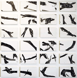 Die aktuelle Serie Erosion setzt sich mit dem Thema im weitesten Sinn auseinander. Zu Beginn noch mit Phänomenen der Natur, auf das Eingraben in den seit tausenden von Jahren unversehrten Opalinuston für ein Atommüll-Endlager. Heute geht es um erodierende Werte in der Gesellschaft. Mehrteilige, kleinformatige Arbeiten gehören zusammen, werden jedoch auseinandergerissen in einzelne, individualisierte Stücke: Die Haltung der modernen Gesellschaft gegenüber den ursprünglichen Werten erodiert.