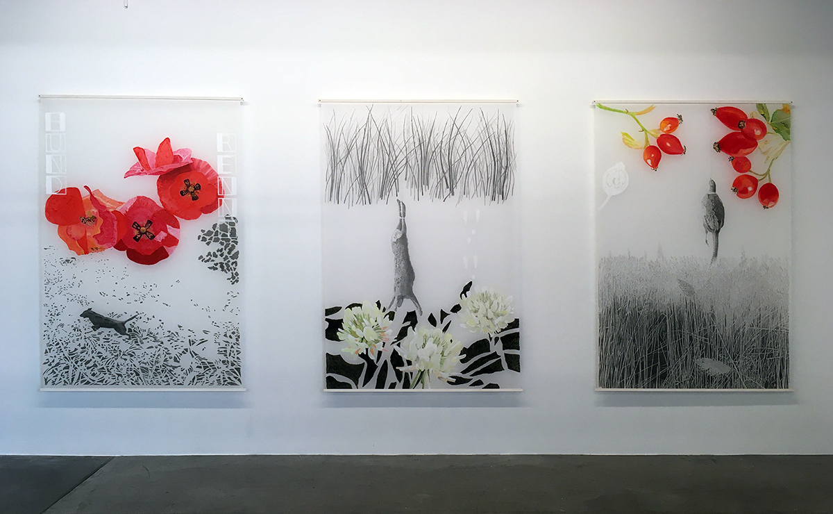 Die Welt auflösen in Bilder und diese mit Bleistift, Schellack oder Acrylfarbe auf Polyesterfolie, oder auch auf und hinter Glas bannen. Es handelt sich um prozesshafte, wachsende Zeichnungen, Installationen und Malereien, die oft so wirken, als ob sie eine komplett anders gesetzte Zeitlichkeit anstreben. Der Künstlerin geht es um die Frage, auf welche Art und Weise wir uns erinnern, respektive inwieweit Gedächtnis und das Gefühl der eigenen Identität einander bedingen. Die Werke leben von der Konzentration auf den Augenblick, in welchem immer wieder Zufälligkeiten das Endresultat mitbestimmen. Zwar spielt die Natur durchaus eine Rolle in den Arbeiten, sie ist jedoch eher Mittel zum Zweck.